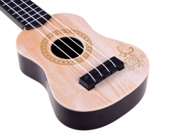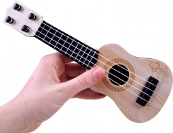 To mini ukulele zaprojektowano dla małych muzyków, którzy chcą odkrywać świat dźwięków. Dzięki ultralekkiemu plastikowemu wykonaniu łatwo leży w dłoniach nawet najmłodszych, a dekor imitujący drewno nadaje zabawce wygląd prawdziwego instrumentu.