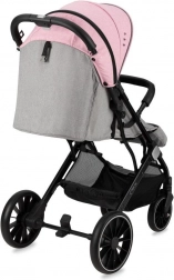 Dzięki dużym kołom – przednie 7", tylne 10" – wózek MoMi ESTELLE DAKAR zyskał terenowy charakter i trafny przydomek DAKAR. Wersja szaro‑różowa będzie idealna na wycieczki z Twoją małą księżniczką.