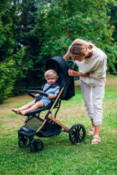 W wózku ESTELLE DAKAR zwrócisz uwagę na subtelny, dopasowany wzór, który pojawia się po przedłużeniu budki.