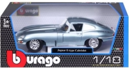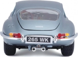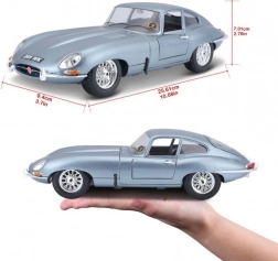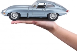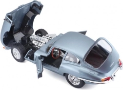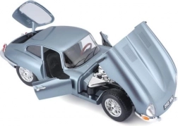 Metalowy model auta w skali 1:18 Bburago 18-12044 Jaguar E-type Coupe nie tylko dla kolekcjonerów. Ma otwierane drzwi i maskę, a skręt kół kierownicą jest w pełni funkcjonalny. Kolor modelu to srebrno-niebieski metalik.
