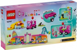 Sala taneczna Gabby to nie tylko dyskotekowa zabawa! Zawiera Gabby, Daniela Kota, Wróżkę Kota, Kotkę Morską oraz wiele muzycznych akcesoriów – w tym party bus z DJ pultem, obrotowy parkiet taneczny, gitarę, dwa mikrofony i lśniącą dyskotekową kulę. Przestrzeń przygotowana jest na nieskończoną zabawę! Dodatek zawiera balony, wrotki, popcorn i dwa kielichy pełne sorbetu w strefie relaksacyjnej, a także katapultę i puszki do zbijania. Zestaw dopełnia tort dla Gabby, prezenty oraz zjeżdżalnia. Elementem jest duży startowy klocek łatwy do złożenia dla dzieci. Kolorowy przewodnik z obrazkami oferuje przejrzyste instrukcje.