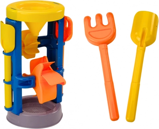 Duży zestaw do piasku z młynkiem oferuje kompletny zestaw do zabaw na świeżym powietrzu w piasku. Zawiera duży młynek o podwójnym zastosowaniu – sitko do przesiewania piasku oraz lejek do precyzyjnego dozowania. Dzięki temu zabawa jest bardziej efektywna i kreatywna.