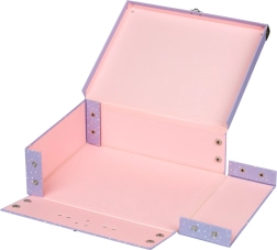 Kufer łączy zabawny design z praktycznym zastosowaniem. Metalowy uchwyt i zabezpieczone rogi zapewniają trwałość i solidność.