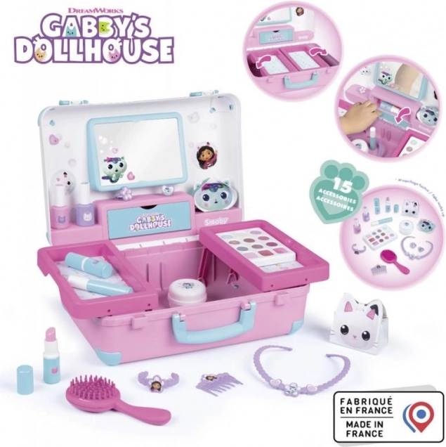 Magiczny salon Gabi Kapelusz Piękno to interaktywna mobilna walizka dla dzieci, która jest wyposażona w 15 akcesoriów imitujących kosmetyki i artykuły fryzjerskie. Wyprodukowane we Francji, przeznaczone dla dzieci od 3 lat.
