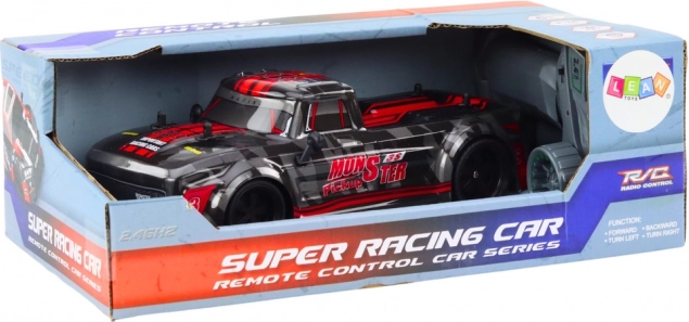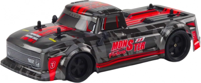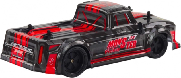 RC pick‑up w skali 1:18 to świetny wybór dla początkujących i małych entuzjastów wyścigów. Dzięki gumowym oponom o znakomitej przyczepności radzi sobie z gładkimi i lekko nierównymi nawierzchniami, pozostając stabilny nawet przy większej prędkości. Eleganckie czarne wykończenie z czerwonymi akcentami podkreśla sportowy charakter modelu.