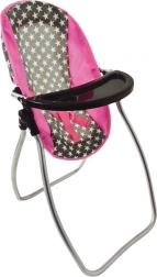 Ten praktyczny zestaw łączy dwie ulubione zabawki w jedną: w mgnieniu oka zamienisz huśtawkę w krzesełko do karmienia dzięki zdejmowanemu górnemu pałąkowi i dołączonemu stolikowi. Solidna metalowa rama, plastikowe łączniki i wysokiej jakości tekstylny pokrowiec we wzór gwiazdek zapewniają bezpieczeństwo i wygodę dla lalki.