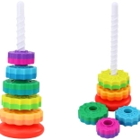 Obrotowa wieża piramida Tęczowy sorter łamigłówka 36 cm 6 el.