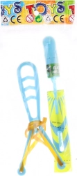 Plastowa proca z wyrzucanym samolotem. Samolot ma światełko na baterie AG13, które są częścią opakowania. Pakowane w woreczku. Wymiary opakowania ok. 9×21×2 cm. Wiek 3+