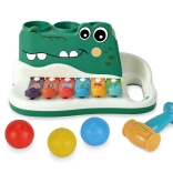 Odkryj zabawną i edukacyjną zabawkę w formie krokodyla do wbijania, która pełni także funkcję ksylofonu, w zestawie z młotkiem i trzema piłeczkami. Wymiary 25x16x12 cm.