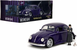 Oficjalnie licencjonowany zestaw kolekcjonerski od Jada Toys zawiera ikoniczny Volkswagen Beetle (1972) w skali 1:24 oraz figurkę Wednesday Addams wraz z Rączką (Thing). Metalowe wykonanie z otwieranymi drzwiami, maską i klapą silnika, gumowe opony i precyzyjne detale gwarantują świetne wrażenia z ekspozycji i zabawy. Idealny dla fanów serialu Wednesday oraz kolekcjonerów od 8 lat.
