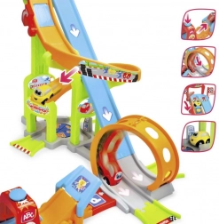 Rozpocznij wyścig błyskawicznym wystrzałem i zobacz, jak autka przelatują przez dużą pętlę. Solidna dawka prędkości i zabawy dla małych kierowców.