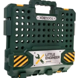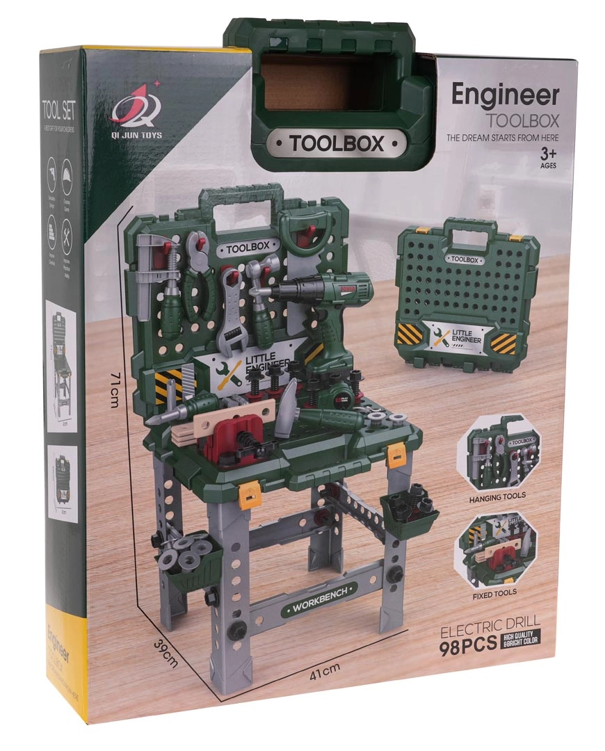 Dziecięce narzędzie 2w1 oferuje doskonałą kombinację zabawy i nauki. Dzięki 98 komponentom dzieci mogą łatwo zamienić elementy na stół roboczy lub przenośną walizkę na narzędzia.