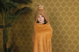Ciesz się połączeniem zabawy i komfortu z tym ocieplonym kocem z kapturem. Design w stylu zwierzaka zachęca do zabawy i rozwija dziecięcą wyobraźnię. Wykonany z super miękkiego materiału z polaru zapewniającego komfort i wygodę.