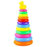 Żółta kaczuszka na szczycie i różnorodne kolory zachęcają do zabawy i wspierają rozwój wyobraźni.