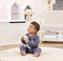 Przytulanka Dobby to miękki, kojący towarzysz inspirowany światem Harry’ego Pottera. Szary kocyk z napisami i gwiazdkami przyciąga wzrok, a mięciutkie ciałko z dużymi uszami i starannym przeszyciem zapewnia bezpieczne i przyjemne tulenie dla każdego maluszka.