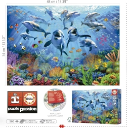 EDUCA Puzzle Zabawa pod wodą o wielkości 500 elementów przedstawia fascynujący obraz życia morskiego. To puzzle jest świetnym wyborem dla wszystkich miłośników podwodnego świata. Jest idealne dla każdego, kto chce spędzić jakościowy czas na układaniu i relaksacji.