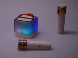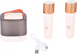 Ciesz się zabawą gdziekolwiek dzięki przenośnemu bezprzewodowemu mini głośnikowi z dwoma mikrofonami. Ten świetny zestaw umożliwia śpiewanie w duecie lub solo dzięki dwóm mikrofonom. Dzięki kompaktowym wymiarom łatwo zabierzesz go na boisko, wycieczkę lub do przyjaciół i zorganizujesz świetną dyskotekę. Możliwość połączenia przez bluetooth pozwala na karaoke bezpośrednio z twojego telefonu.