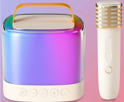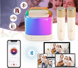 Przenośny bezprzewodowy mini głośnik z dwoma mikrofonami jest idealny dla każdego małego DJ-a! Dzięki mikrofonowi, efektom świetlnym disco, wygodnej rączce i innowacyjnemu designowi, jest to świetny wybór na zabawę z przyjaciółmi, grillowanie lub domową imprezę.