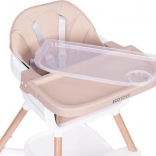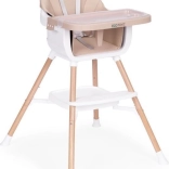 Witaj przy stole! To krzesełko ułatwi wspólne posiłki od pierwszych stałych pokarmów. Szeroka tacka zapewnia miejsce na jedzenie, zabawę i twórczość, a miękkie, trwałe obicie z łatwej w czyszczeniu eko skóry gwarantuje wygodę i prostą pielęgnację. Nowoczesny wygląd pasuje do każdego wnętrza.