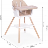 Praktyczne dziecięce krzesełko do karmienia 2 w 1 marki ECOTOYS rośnie wraz z Twoim dzieckiem od 6 do 36 miesięcy. Zapewnia wysoką stabilność dzięki metalowym nogom, łatwą pielęgnację dzięki eko skórze oraz wyjmowanej, dwuwarstwowej tacce nadającej się do zmywarki. O bezpieczeństwo dba 5‑punktowy pas i antypoślizgowy ogranicznik, a komfort uzupełniają podnóżek i półka na akcesoria pod siedziskiem. Można używać jako wysokie krzesełko lub nakładkę na zwykłe krzesło – idealne także w podróży.