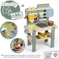 Odkryj zabawę na świeżym powietrzu z zestawem SMOBY LIFE – dziecięcą zewnętrzną kuchnią do wody i piasku, która wspiera kreatywność, percepcję sensoryczną i współpracę. Dzięki wyjmowanym pojemnikom, działającemu kranikowi i bogatemu zestawowi 15 akcesoriów dzieci spędzą godziny na tworzeniu z piasku, wody i skarbów z natury.
