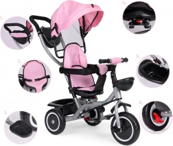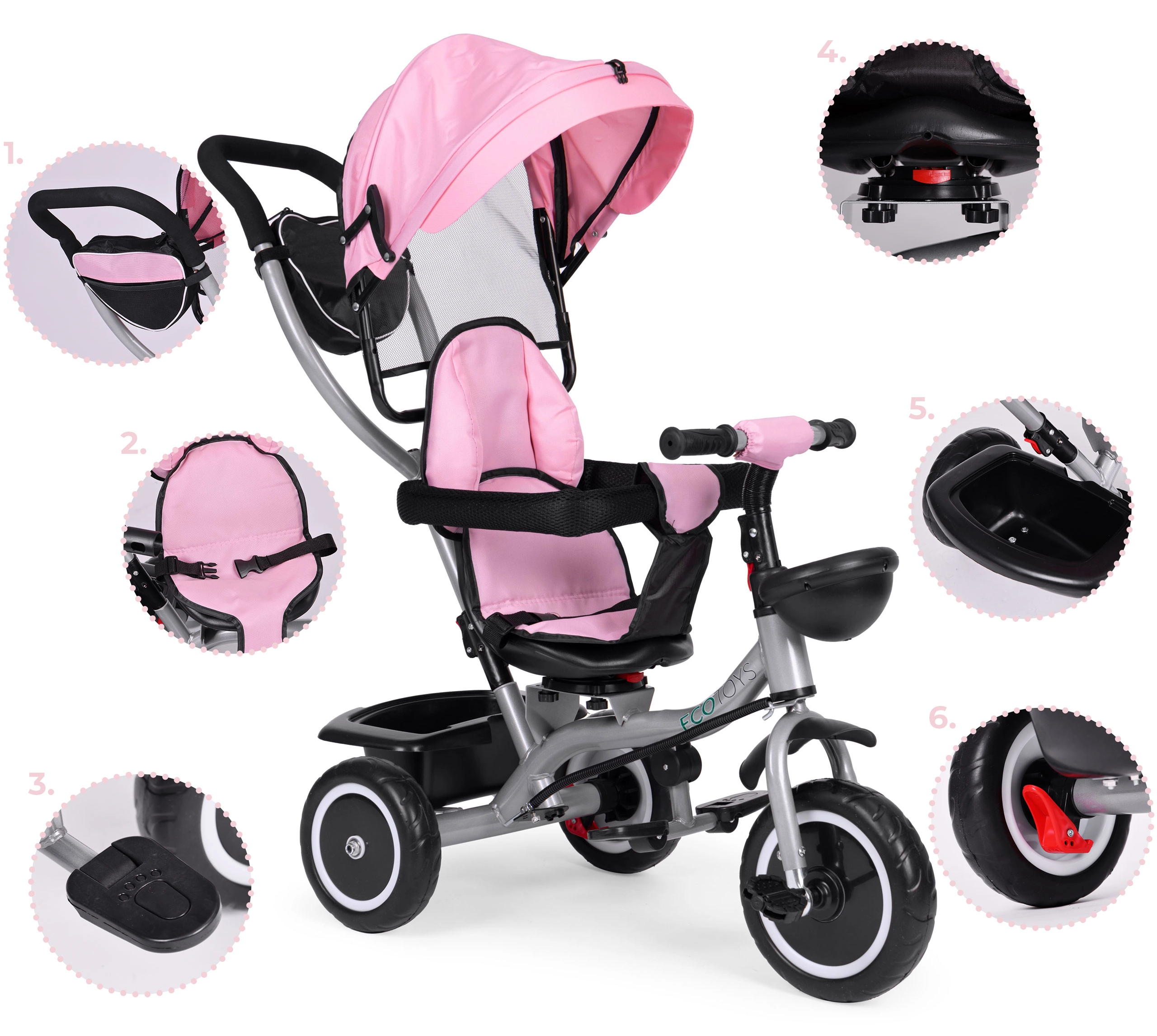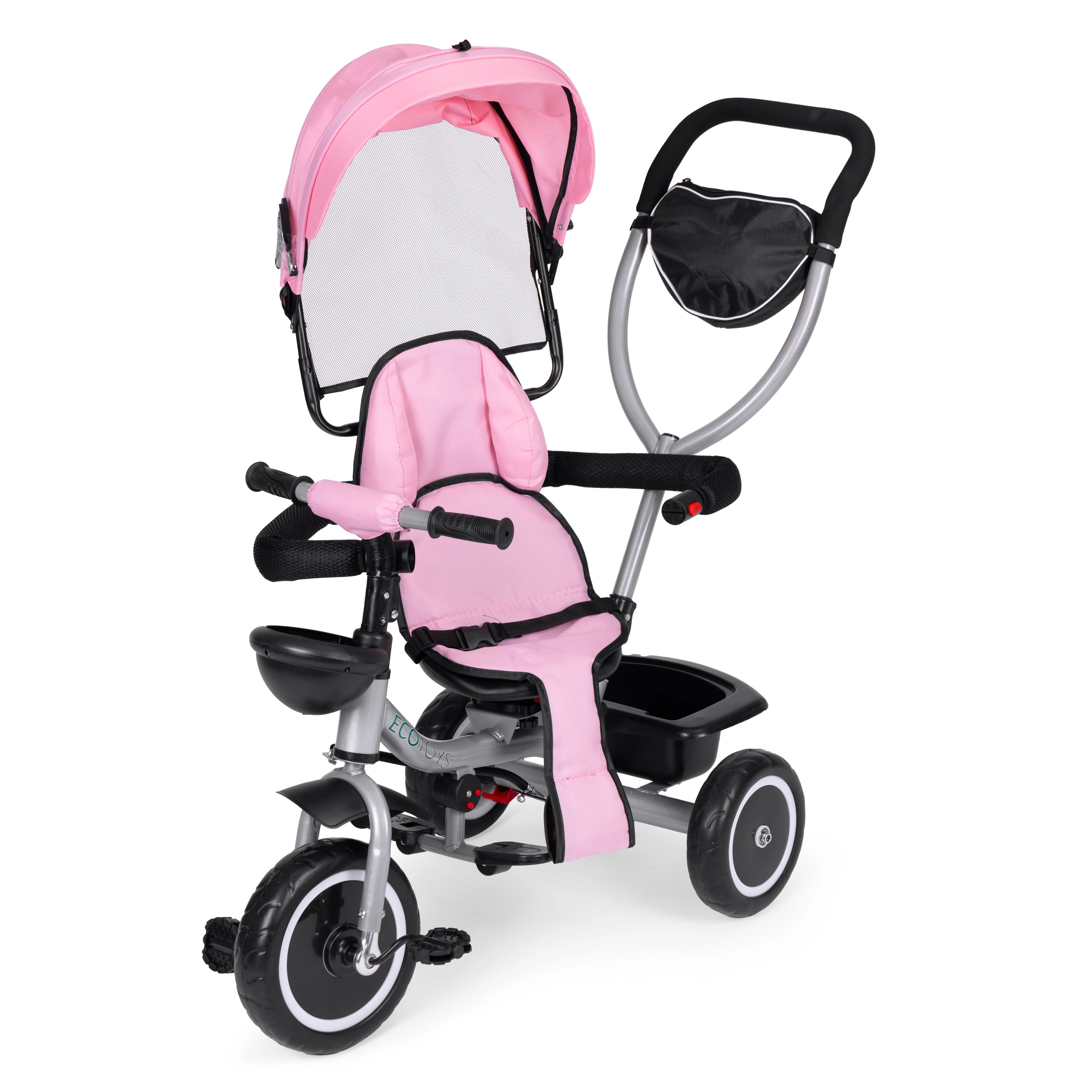 Dziecięcy 2w1 trójkołowiec z obrotowym siedziskiem i składaną budką, różowy ECOTOYS