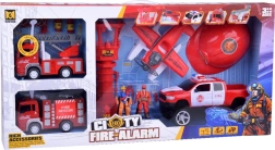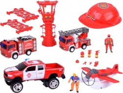 Zestaw zawiera pojazdy strażackie z realistycznym designem, w tym wysuwanym drabiną i armatką wodną, co zapewnia doskonałą zabawę w wyobrażeniowe gry.