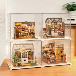 Zaprojektowana do miniaturowych domków serii DG (z wyjątkiem DG12). Wnętrze 22 × 22 × 22,5 cm jest idealne dla większości scen, a zewnętrzne wymiary 28,7 × 23,7 × 24,4 cm zapewniają stabilność i ochronę. Dzięki sprytnej konstrukcji witryny można układać w stos do 6 warstw, oszczędzając cenne miejsce na półce lub biurku.