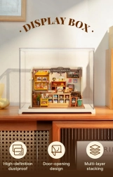 Idealna witryna do miniaturowych domków serii DG (z wyjątkiem DG12). Utrzymuje scenę bez kurzu i pięknie ją prezentuje – od kawiarni, przez piekarnię, po szklarnię czy kuchnię.