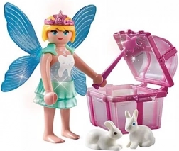 Ten uroczy zestaw z serii PLAYMOBIL Special Plus ucieszy wszystkich małych marzycieli. Wróżka Ząbkowa z niebieskimi skrzydłami, różową koroną i magiczną różdżką wnosi do dziecięcego pokoju sporą dawkę fantazji i radości. Przezroczysta różowa skrzyneczka świetnie nadaje się do schowania mlecznego ząbka lub drobnych skarbów.