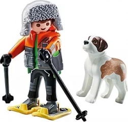 Odkrywaj ośnieżone przestrzenie z narciarzem PLAYMOBIL i jego oddanym bernardynem. Figurka jest wyposażona w rakiety śnieżne i kijki, więc jest gotowa na każdy teren. Dzieci docenią możliwość zdjęcia czapki i rakiet oraz łatwą zmianę wyglądu bohatera na potrzeby nowych scenariuszy zabawy.