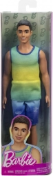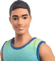 Lalka Ken ma szeroką sylwetkę, ubrana jest w ombre top, który przechodzi z niebieskiego do zielonego, idealny dla wszystkich osobowości i okazji. Postrzępione dżinsowe szorty i srebrne trampki dopełniają jej uniwersalny i wyrafinowany wygląd, zarówno na spotkania z przyjaciółmi, jak i na zabawy na plaży.