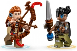 Minifigurki Aloy z łukiem i Varla z włócznią uzupełnisz o elementy ognia, mrozu lub wstrząsu, aby wiernie odtworzyć taktyki z gry Horizon.