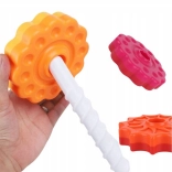Manipulacja pierścieniami na patyku wspiera rozwój drobnej motoryki i koordynację ręka-oko u dzieci.