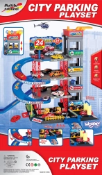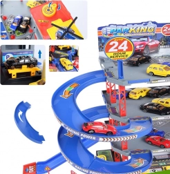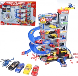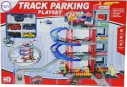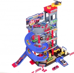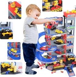 W pudełku znajdziesz wszystko do natychmiastowej zabawy: 4 metalowe autka, helikopter, znaki drogowe, pachołki, elementy najazdowe, windę oraz naklejki do tworzenia realistycznego otoczenia. Wytrzymała plastikowa konstrukcja jest lekka, stabilna i odpowiednia do codziennej zabawy.