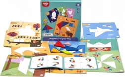 Z magnetycznym tangramem TOOKY TOY dzieci łatwo układają kształty i obrazki na przygotowanych podkładach. Kolorowe geometryczne elementy przylegają do podkładki, więc wygodnie się nimi manipuluje w domu i w podróży. Zabawa wspiera wyobraźnię, koncentrację oraz samodzielne rozwiązywanie zadań.