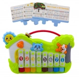 Dzięki dołączonym 5 kartom z nutami i prostymi piosenkami dzieci krok po kroku nauczą się odgrywać znane melodie, trenując koncentrację, rozpoznawanie dźwięków i rozwój słuchu muzycznego. Bezpieczne plastikowe materiały, metalowe listwy ksylofonu oraz zaokrąglone krawędzie zapewniają wygodne i bezpieczne użytkowanie już od najmłodszych lat.