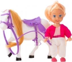 Uroczy zestaw jeździecki z mini laleczką i białym konikiem zapewnia godziny kreatywnej zabawy. Laleczka o wysokości 12 cm w stroju jeździeckim jest gotowa na przejażdżkę. Konik z długą grzywą i ogonem jest wyposażony w fioletowe siodło i uzdę, co dodaje realizmu zabawie. Dzięki ruchomym elementom laleczka może wygodnie siedzieć w siodle, a dzieci rozwijają wyobraźnię, małą motorykę i empatię podczas opieki nad zwierzątkiem.