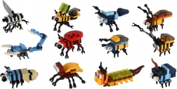 W opakowaniu znajdziesz mix przeróżnych chrząszczy i innych drobnych stworzeń, które można dowolnie łączyć. Elementy są kompatybilne w ramach zestawu, dzięki czemu powstają niepowtarzalne kombinacje i wciąż nowe pomysły na kreatywną zabawę.