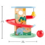 Tor w spiralnej konstrukcji oferuje wiele sposobów zabawy i poprawia małą motorykę oraz koordynację dziecka.