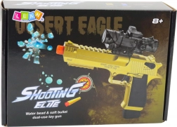Stylowe pudełko prezentowe z dynamiczną grafiką podkreśla możliwości pistoletu: strzał żelowymi kulkami i miękkimi strzałkami – świetny pomysł na prezent.
