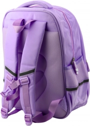 Nasz fioletowy plecak szkolny oferuje dwie pojemne komory główne. Główna komora jest wyposażona w wewnętrzną przegrodę, która ułatwia organizację książek i przyborów szkolnych. Z przodu znajdują się dwie dodatkowe kieszenie, a po bokach elastyczne kieszenie na butelkę.