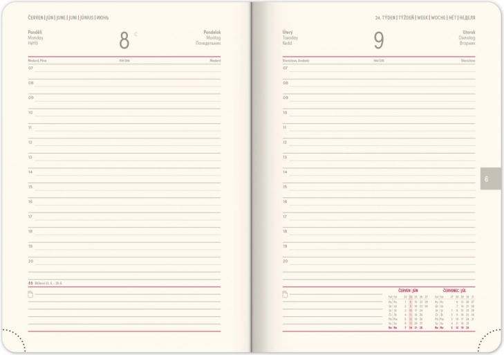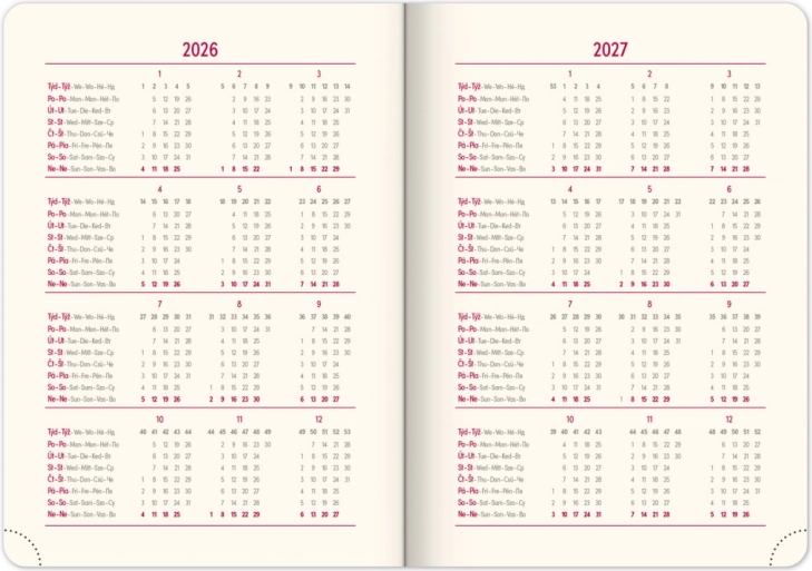 - Kalendarzem czesko-słowackim uzupełnionym o język angielski, niemiecki, węgierski i rosyjski.