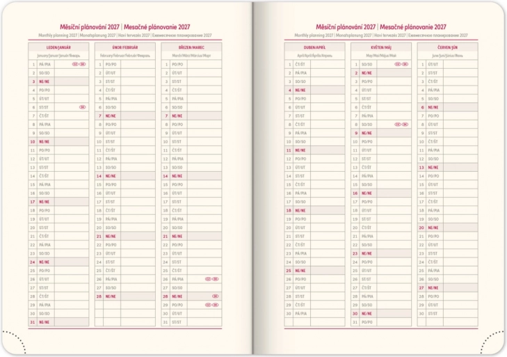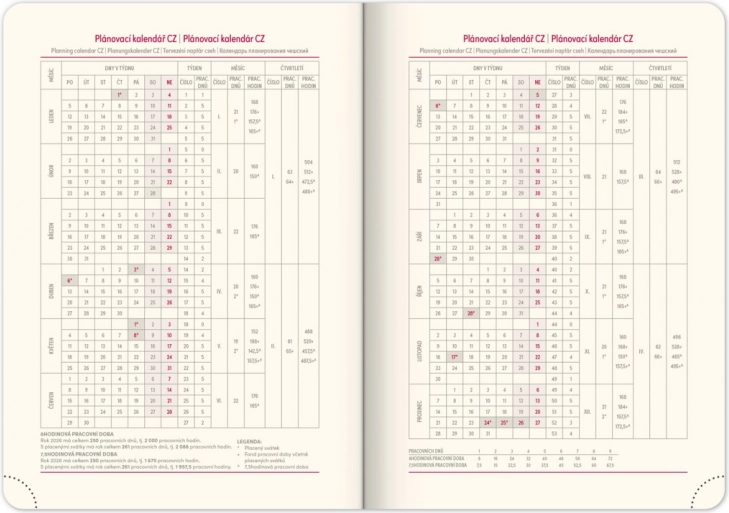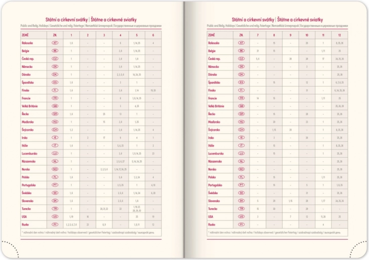 - Uwzględnieniem świąt Republiki Czeskiej i Słowackiej oraz międzynarodowych świąt dla lepszej orientacji.