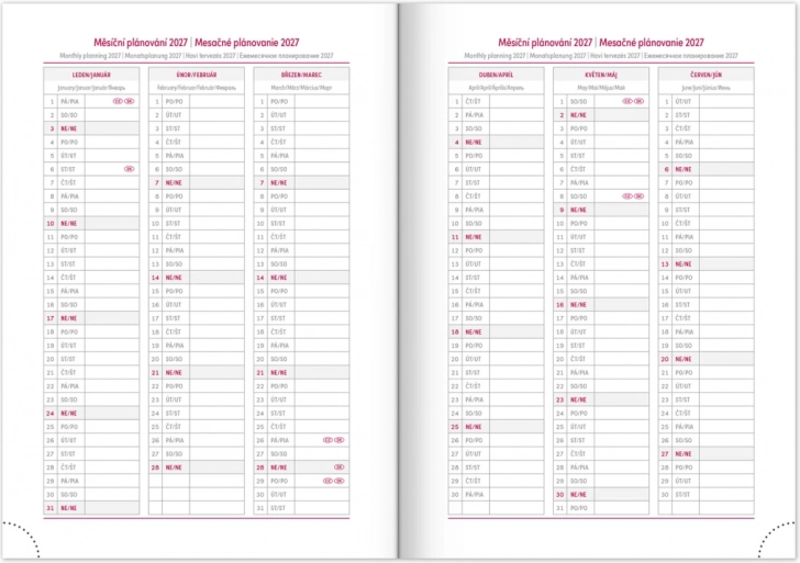 - Kalendarium czesko-słowackie + angielski, niemiecki, węgierski, rosyjski