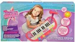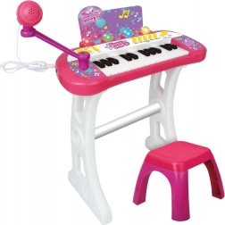 Dziecięce klawisze o nowoczesnym designie, ze stojakiem i mikrofonem, są idealne dla małych muzyków. To pianinko poprawia motorykę oraz rozwija słuch muzyczny i poczucie rytmu.