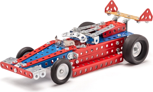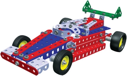 Ten zestaw od marki Merkur pozwala dzieciom wejść do świata samochodów wyścigowych. Umożliwia złożenie dziesięciu różnych modeli z wysokiej jakości elementów metalowych i plastikowych. Zabawka polecana dla dzieci powyżej 6 roku życia.