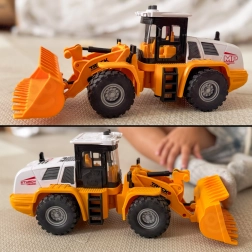 Zamień pokój w plac budowy z ładowarką WOOPIE 1:16. Autentyczne detale, przezroczysta kabina oraz funkcjonalne ramię z łyżką pozwalają nabierać i wysypywać materiał jak na prawdziwej budowie. Światła i dźwięki dodają zabawie atmosfery, a napęd frykcyjny zapewnia płynną jazdę po lekkim popchnięciu.