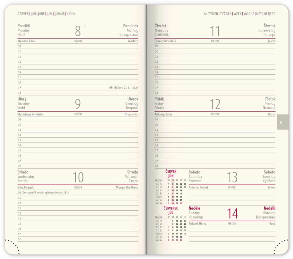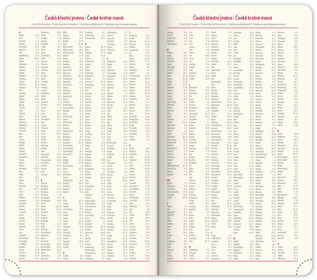 - Służbowy kalendarz planujący oraz spis czeskich imion.