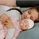 Annabell o wysokości 43 cm ma miękkie ciałko idealne do przytulania i delikatnej zabawy. Interaktywna technologia zapewnia naturalne reakcje – podczas ssania smoczka lub picia z butelki porusza ustami i w zależności od sytuacji zamyka lub otwiera oczy. Dzięki kojącemu kołysaniu łatwo ukołyszesz ją do snu w dwóch kierunkach.